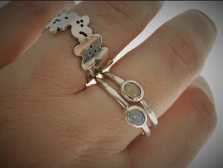 Opaler er ædelsten, der udviser et spektrum af farver fra regnbuens palette i små fordybninger i overfladen.