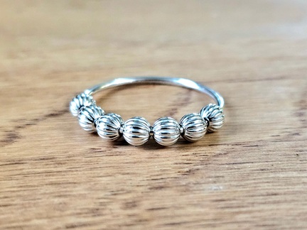 Jeg laver disse ringe indtil jul af 1,2 mm sølvtråd med 7 kugler af 4 mm, og de laves på bestilling efter din ringstørrelse, så du må forvente ca. 1 uges produktionstid.